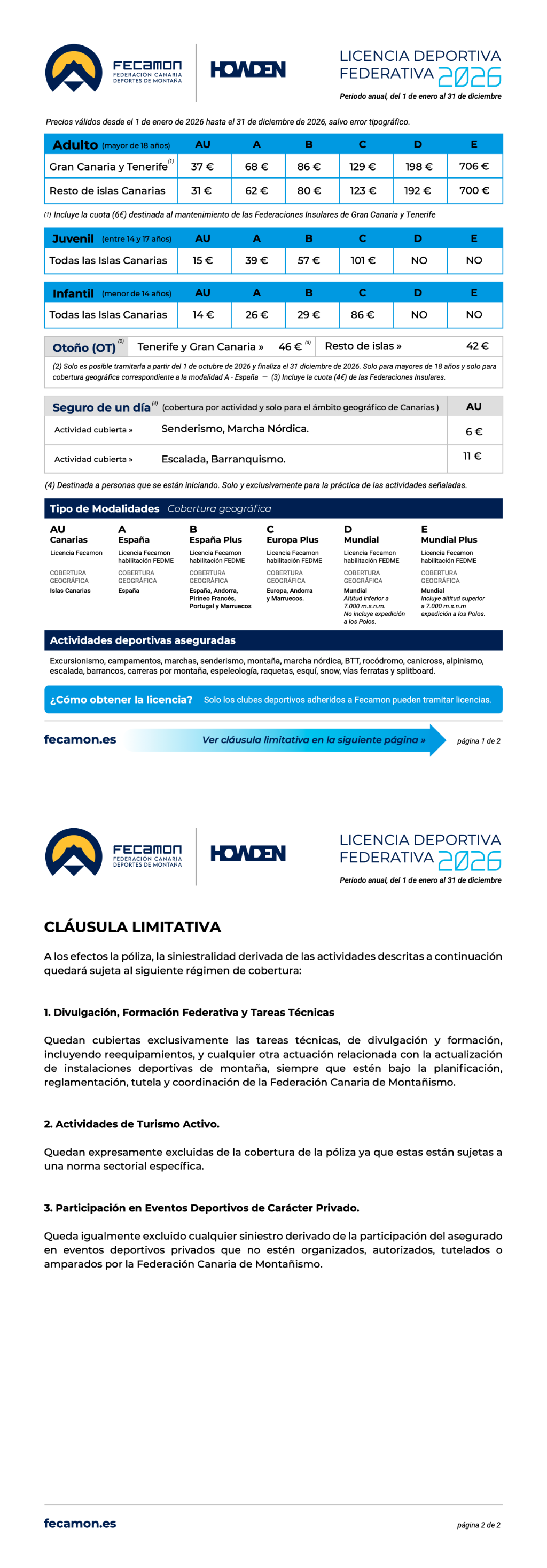 | El costo final de la licencia es el fijado en la tabla anterior + 5 € por gastos de gestión. | ||